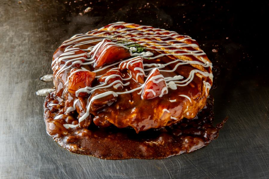 千房こだわりの国産小麦100%使用のお好み焼生地にチーズを挟んでふっくらと焼き上げ、薄焼きたまごをのせた上にフレッシュトマトを煮込んだアパ社長カレーをトッピング。ふっくら生地に濃厚なチーズの旨味とトマトと本格派ビーフカレーが最高のマリアージュとなる至高の一枚となっています。