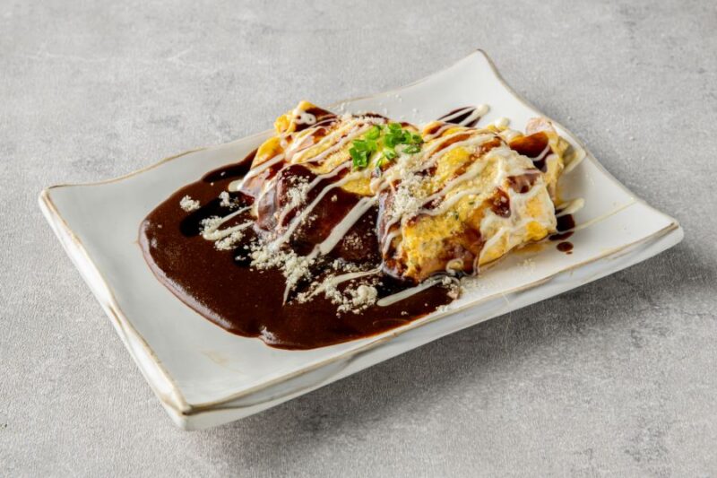 玉子をふんだんに使用しふっくら半熟で仕上げる千房で1番人気のサイドメニュー「とんぺい焼」にとろけるチーズとアパ社長カレーをトッピングして更にパワーアップしました。