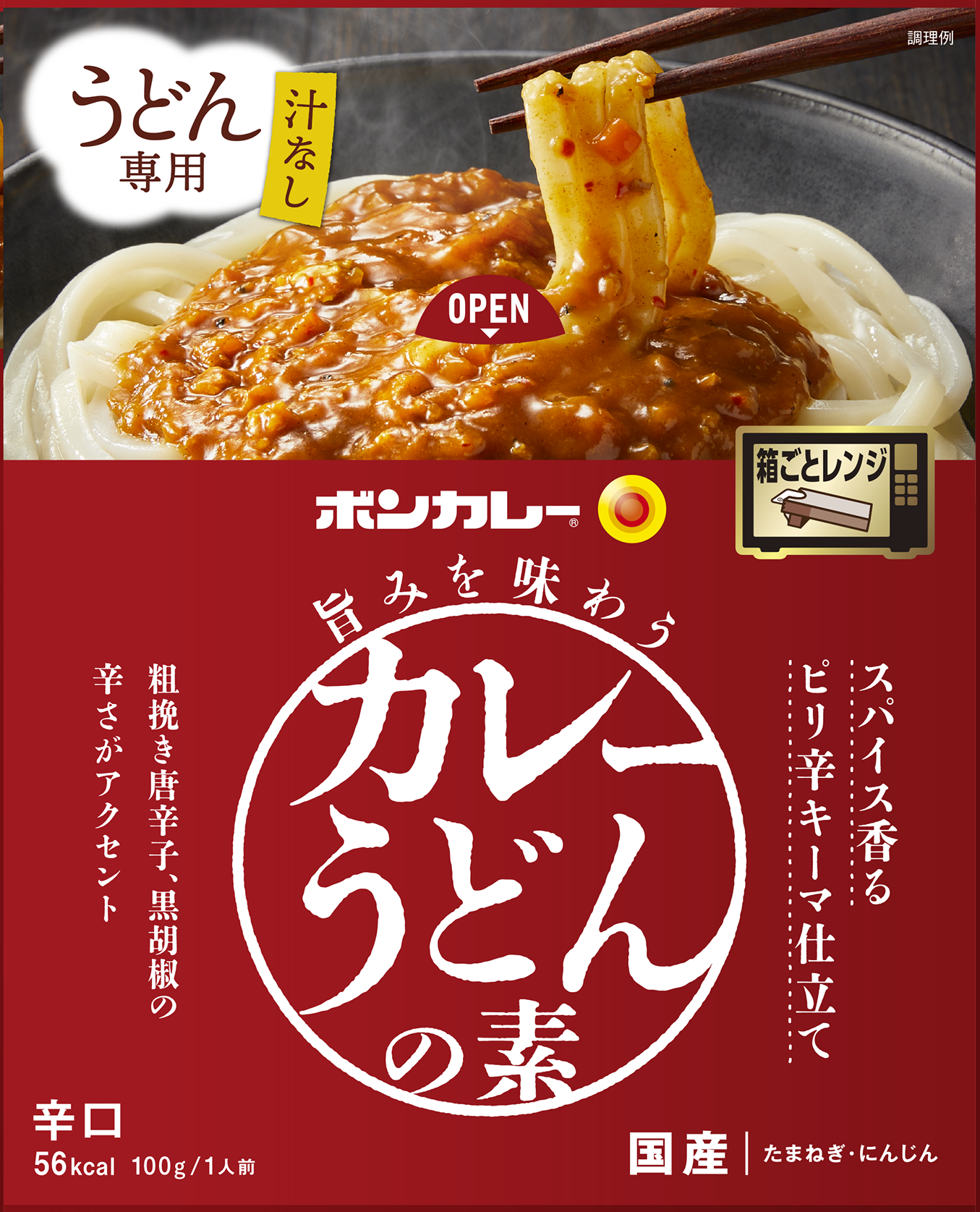 ■製品特長:うどんに合うように仕上げたカレーうどんの素。カレーうどんに欠かせない旨みにこだわり、アイテムごとにそれぞれの味わいをお楽しみいただけます。国産たまねぎ・にんじん使用。箱ごとレンジ調理可能。