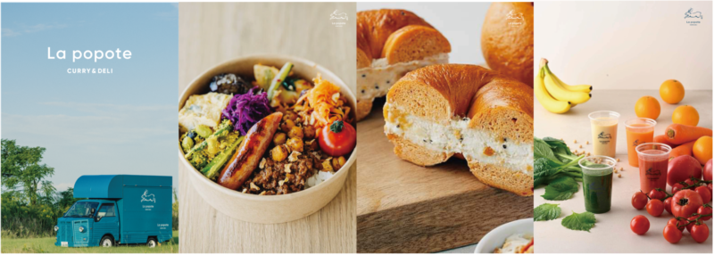 La popoteは、熊本市を中心に九州各地のイベント等にキッチンカーを出店。提供メニューは、美味しさと栄養がたっぷりの乾燥野菜を使ったカレーのお弁当やデリ、ドライフルーツを使ったスプレッドを挟んだベーグル、新鮮さを損なわず急速冷凍した野菜やフルーツから作るスムージーなど、「野菜を美味しく、たくさん摂れる」ものばかりを揃えた「ヘルシーファーストフード」です。