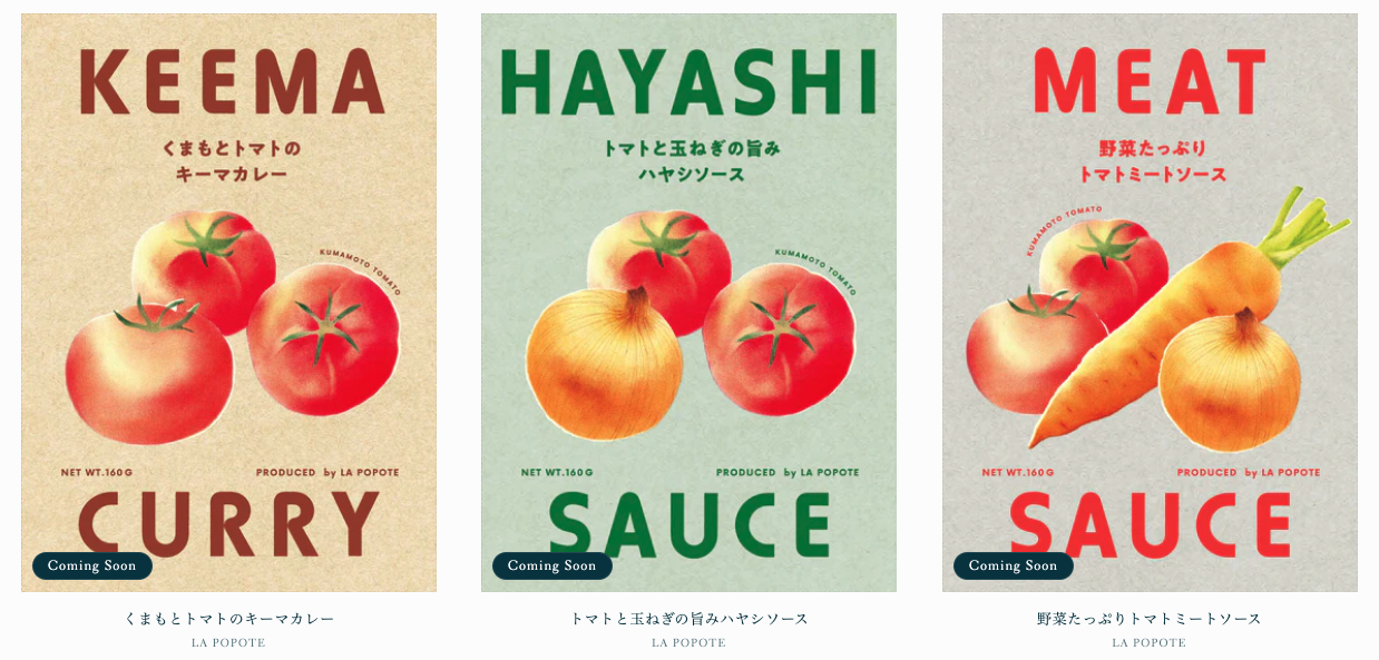 『ヘルシーファーストフード』のミールスカレーに欠かせない、「くまもとトマトのキーマカレー」や、HOSHIKOの乾燥野菜を活かして作られた「トマトと玉ねぎの旨みハヤシソース」、「野菜たっぷりトマトミートソース」の3種のレトルトのほか、ドライフルーツなどの常温商品が2024年2月26日にオープンするLa popoteオンラインストアにてご購入いただけます。
