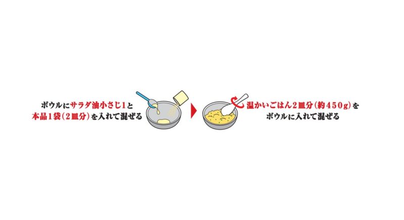 (2)材料(温かいごはん・サラダ油)と混ぜるだけで作ることができます。(炊飯器での炊き上げ不要)
